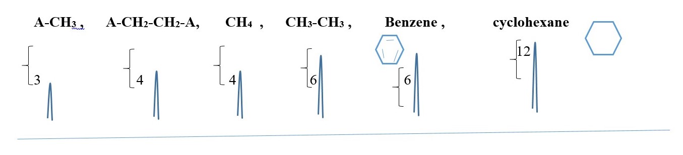 E.g. All these structures [ A-CH3 , A-CH2-CH2-A, CH4 , CH3-CH3 , Benzene , cyclohexane ] would give a SINGLET peak at room temperature because all the protons are equivalent or homotopic and therefore N=0 . Multiplicity = 1 = singlet.