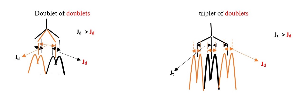 Therefore, if the complex multiplet has DOUBLET with larger coupling constant than TRIPLET, then the name will be DOUBLET OF TRIPLETS and vice versa if TRIPLET has larger value coupling constant [ TRIPLET OF DOUBLETS].