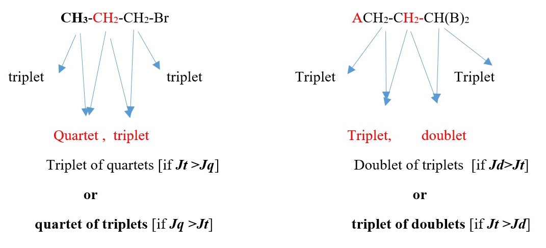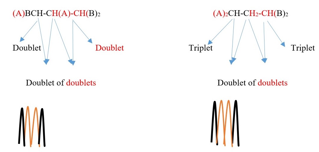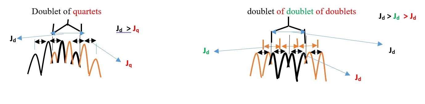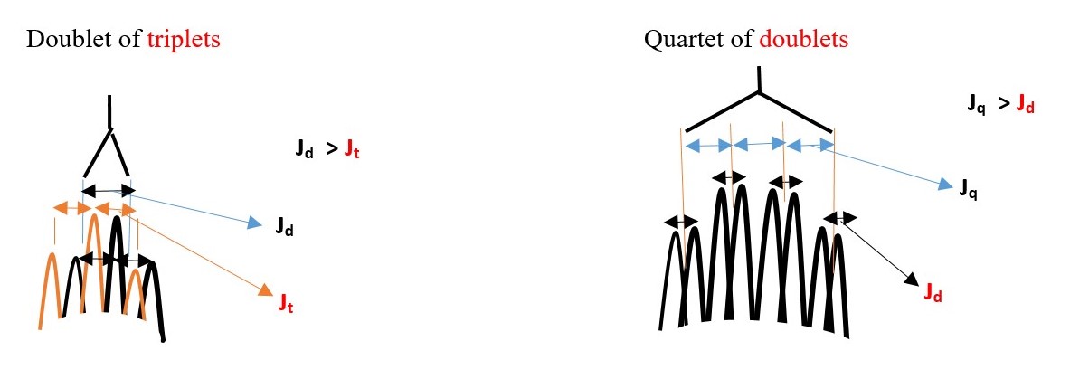 E.g. If we expect a proton signal to be DOUBLET OF TRIPLET or TRIPLET OF DOUBLETS, the experiment will eliminate one of the outcomes. The signal with LARGER value of coupling constant determines the first name.